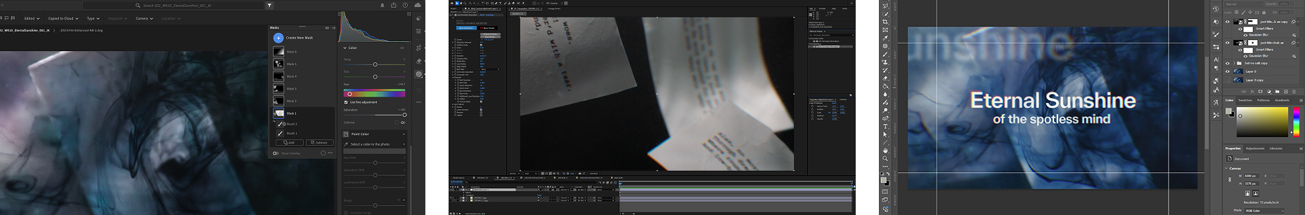 Our compositing flow—Jonathan did the color correction in Lr before passing it off to me for chromatic aberration and effects in Ae, and type which was laid out in Ai, processed in Ae, and integrated in Ps.
