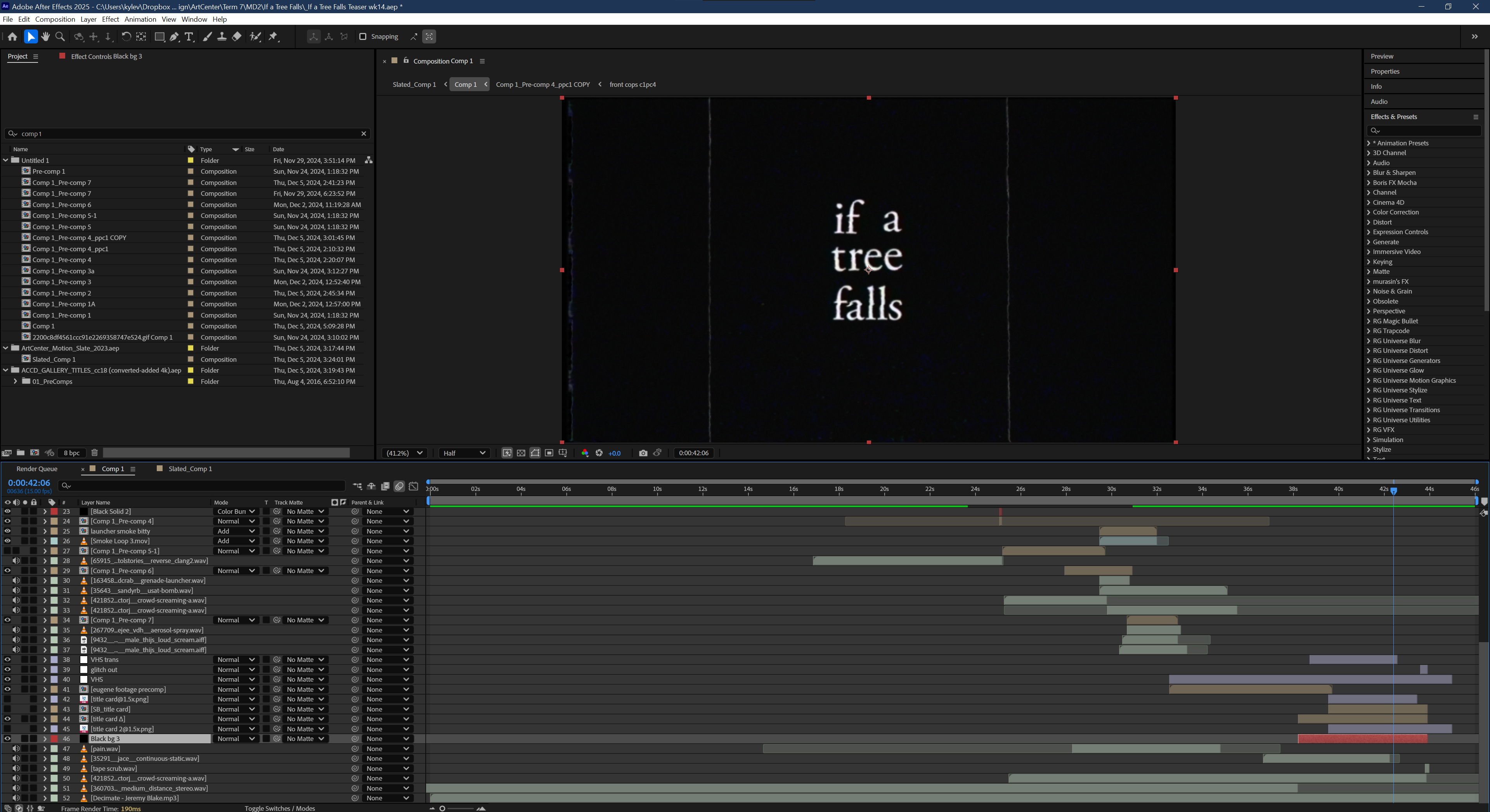 Finally, to maximize the integration of sound with the amount of subtle tweaking involved in this project, I built it around the visuals in After Effects directly.